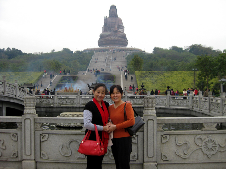只要碰到游客,我们就拉着别人帮我俩照合影——就这样搂搂抱抱、嘻嘻哈哈、喘喘嘘嘘一直到山顶。 IMG_3002.jpg 哇,远远的相望,那边山上一尊观音直耸云际: 调1-1000.jpg 天啦——这一定是世界上最大的观音! 我俩顾不得刚爬上这座山,腿的酸胀,高跟鞋的脚累,拍了远景,立马又三步并做两步,奔到那个山头。 及至近前,哇塞:这趟不来真是遗憾啦! IMG_3053[1] 调合3.jpg 真的,如此奇景妙境何处觅寻? 呵呵呵,在大慈大悲的观音面前,我俩也很虔诚地表示了心意:为我等同命运之亲朋好友,请赐大家健康哦! 当然,我俩就抓机会“近水楼台”了——拽这个、拉那个帮我们“咔嚓”。一处处地在游人艳羡的目光中搂着、抱着……人们可能都在嘀咕——这俩老太太绝对“同性恋”! 疯着、挽着忘记了时间,山色已经黯淡了。我俩急急忙忙拦住了下山的免费车,到了进山大门前,才想起,门口还没留影呢!又在那里用各种姿势造起来——一对老夫妻瞅着我俩,也跟在我们后面,学着我俩的珀斯造型咔嚓着! IMG_3069.jpg IMG_3075.jpg 岂知更好笑的还是晚上在酒店里。 我们之前就做好了“开房”的准备:晚餐后寻寻觅觅、蹊蹊跷跷,下榻于西樵山边。两个疯老太太在房间里简直是返老还童,极尽少女的天性,回温花季的憧憬,享受放肆的幸福……直至转钟三点仍不想寐! IMG_3090.jpg 种种缠绵延续到第二天下午——还不舍离分!直到彬彬的朋友找来堵住我们…… 甜蜜的一切沁人心扉;知友的情谊几十年前敲定! 当然几十年后,只有“山无陵……乃敢与君绝”!