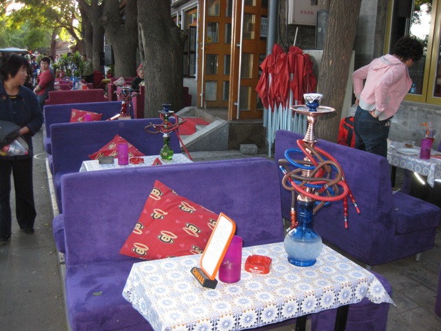 笔教授您猜错了,这不是老北京的玩意儿,而是地道的“泊来品”——阿拉伯水烟!近年在酒吧里很时兴,这是我国庆节时在后海的酒吧拍的。