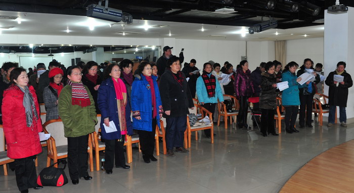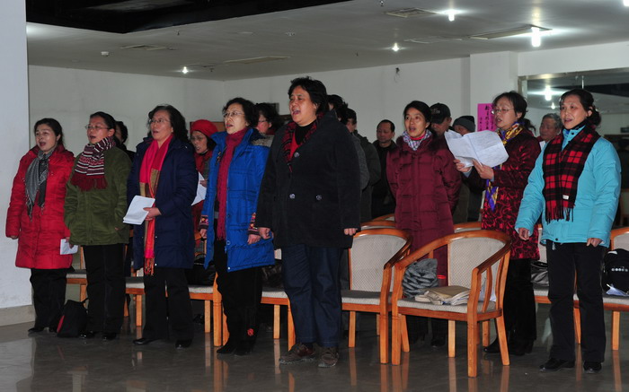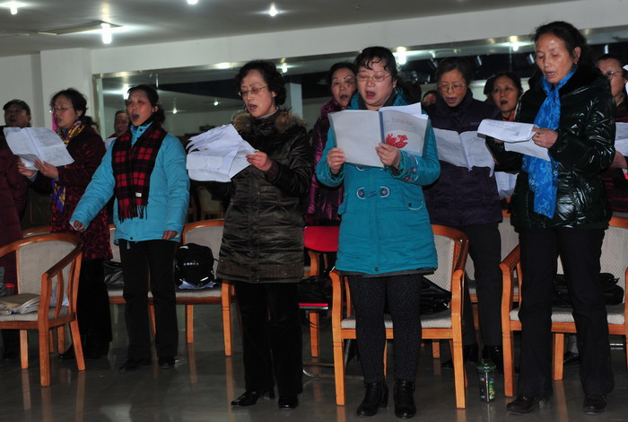从后几张照片中,本人读出了无言的批评:该背唱了,女低的同胞们! 应该向女高学习,下次争取不看歌谱了.