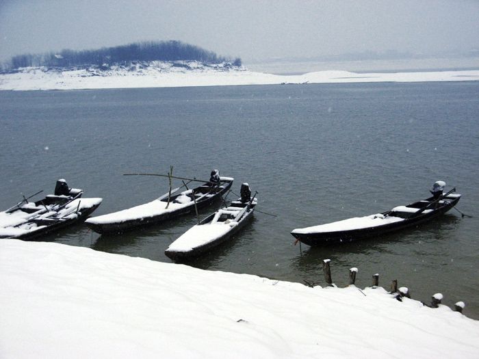 初到长沙城北,于两江交汇的捞刀河入江处,拍下与别处不同的雪景,和大家分享。