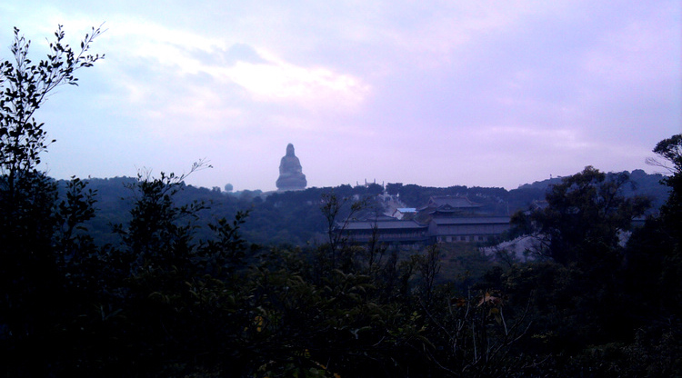 哇,远远的相望,那边山上一尊观音直耸云际: