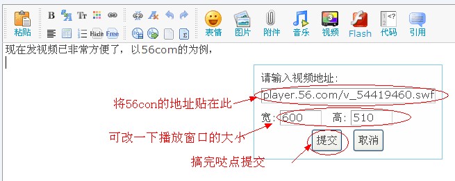 先到56COM找到要贴的视频列表,复制其提供的flash地址