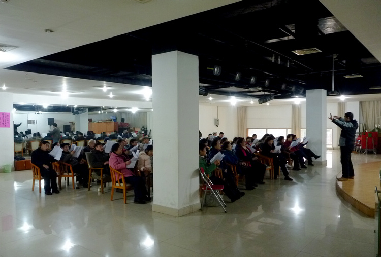 2、正唱着,见牛管理员、李姐悄悄的走了进来。跟大家打了招呼后,不影响排练,又悄悄地走了。