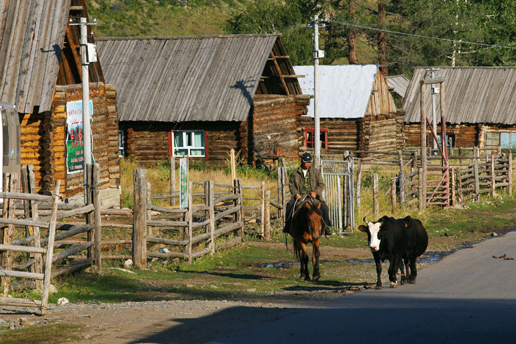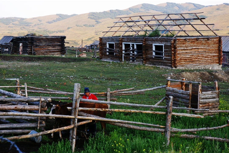 阿尔泰山大悲悯,收留了这支濒临灭绝的部族,提供了用之不竭的丰美水草,还有密密的大森林,挽住流浪的身影,羁绊飘泊的生活,洗濯嗜血的心灵,驯养狂放的野性,也使他们丢弃了勒勒车和蒙古包,拜原住民哈萨克人为师,盖上了尖顶小木屋,最终定居于此固守千年。