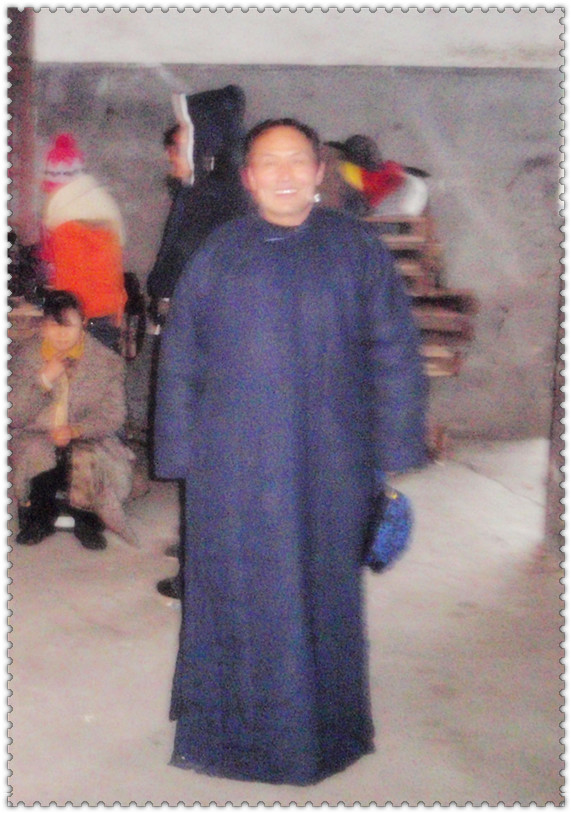 2.小弟弟说他六岁了,他妈妈说他说谎。妈妈是北站的工作人员,儿子吵嚷着要来拍电影,妈妈只好去学前班为儿子请了假,并带到月台上,由服装师帮忙化了装,妈妈把儿子丢在月台上就上班去了,当然,隔三差五地他妈妈又偷偷地溜到月台上来一下。这小家伙蛮有味,只要是拍电影,要他往东决不往西,引起大家的喜欢,纷纷拖去拍照。我也起了意,结果总是抢不到人,我只能放弃。下午要拍我们上车了,导演要求我们手上都要有道具,旅客嘛,要不有行李,要不带领小孩子,空着手确实不象旅客。有个女的没有道具被副导演发现了,被“叫蔸”。这个女的不简单,她立即从另一个女的手上抢过这个小弟弟作具,居然被副导演认可了,副导演还要达因和行者扮夫妇,要我和他俩扮祖孙仨,跟在达因后面上火车。这不是“无心插柳”么?于是乎在车厢里我拍了这张。