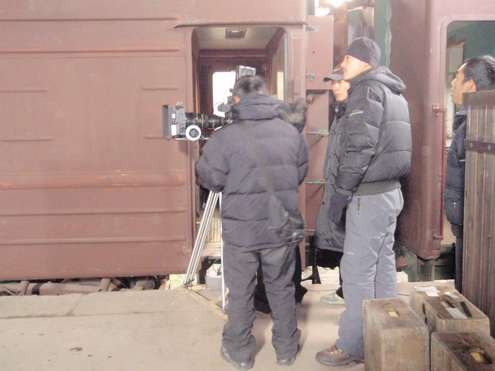 北站拍电影记 昨天,又是为拍电影《湘江北去》起了个早床;又是换上长袍马褂,不过是棉的;服装师可能记起了我,又往我头上扣一顶瓜皮帽,把我打扮成土地主;又是一上午我们群众演员没戏,但这回我们没有出长沙,就在老北站拍摄。我们这组来了八人,有两人没来,除达因女士、行者和我是上星期去靖港拍摄过外,另五位是上地团、渠江飞龙、曾老师和一对夫妇,他们都是初来的。 剧组将北站的一老货房布景成老北京站的站台,站台边停了五六节客车车厢,车厢被涂料刷成棕色,昨天在这里已拍完了青年毛泽东到了北京,今天还是利用这站台和车厢来拍毛泽东离开长沙,杨开慧来送他,我们群众演员就扮成旅客。 整个一上午就是他们两人的戏,毛泽东站在开动的火车车门口,杨开慧追赶着火车给毛送围巾,饰杨开慧的是《山楂树之恋》中的女主角周冬雨,是位纯青白净的小姑娘,相对来说,保剑峰饰毛泽东就成熟些。这个镜头拍了六七次才成功,每次杨开慧都得追着火车跑三四十米,也够累的。然后就拍毛泽东站在启动的火车上伸手想接围巾但又没能接到的镜头,站台上的摄影机也跟着火车同步的拍。过后,摄像机又移到火车上,导演也坐在火车里,从车上来拍杨开慧追火车的镜头,随后拍蔡和森,蔡畅、萧子升、向警予和杨开慧一道送毛的镜头,这里面有一个熟面孔,《天天向上》里的钱风饰萧子升。后来把我们所有的群众演员都叫到火车上,坐在靠站台的窗户位置上,从车下拍送别的镜头。就是这样导演从不同的角度反复来拍这个镜头。 昨天虽出了太阳,但气温仍低,站台上穿堂风大,尽管我们穿的是新做的棉长袍马褂,但还是感觉冷。站台上又没地方坐,站着也累,我们这几个人就坐到车厢里。看了车厢里的温度计,车厢里也只四度,但没风,到底暖和点,后来不少群众演员学我们样上车来避寒和休息。火车也听导演的指挥,一下开出站台,一下又倒回站台来,我们坐在车上随它来回奔波。另一组的一位老人说,“搞了半天才晓得拍电影都咯样做假的”,大家都笑了起来,不知他以前是真的不知道?还是说故意说的笑话。 火车拉车厢的镜头一直拍到中午一点多才结束,我们才去吃中饭,中饭还是盒饭,中饭后上车厢休息了一会儿。下午三时多才开拍群众演员上车的镜头,这时我们发现站在导演边上的一位气质高雅的中年妇女有些面熟,额头上有颗痣,这是奚美娟,在本片中她饰杨开慧的母亲,她真人比电视里得还漂亮些,导演对她格外亲切,左一口阿娟、右一口阿娟的。导演对这三个主要演员都特别客气,喊饰毛泽东的保剑峰叫保峰或保仔、唤周冬雨就冬雨、冬雨的,像母亲唤女儿似的,叫别的演员就只直呼他们所演的角色的名字。下午这个重头戏是杨开慧和她的母亲在站台上送毛泽东上火车,他们三人站在车门旁依依话别,我们就从他们的身边陆续上车。 开拍前只听见导演一人指挥的声音,“冬雨,往右移一点,多了,可以了”,“保峰不要说话了”,“阿娟,脸偏一点,好啦,开拍!”一声令下,我们群众演员就鱼贯的走向车厢的另一个门上车,我们只是作为他们三位主要演员的活动背景,摄影机拍的全是我们的背影,就这个镜头也反反复复拍了多遍,导演才满意。最后又叫些群众演员坐在车厢里,他们三人仍在车下话别,都是现场录音,我们都不能出声。等拍完这些,天完全黑了,才让我们卸妆收工,这也只让我们群众演员回家,他们还得继续拍下去,还在摄影场地吃晚饭,够辛苦的。 照片附后,因使用的是卡片机,在摄影棚内光线差,效果不好。