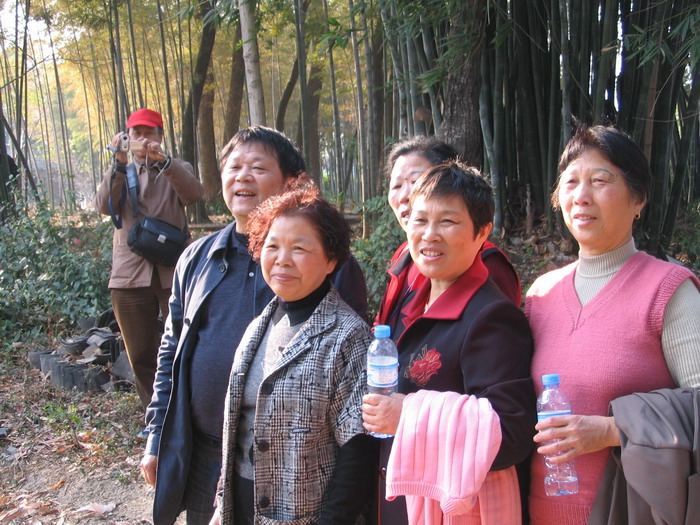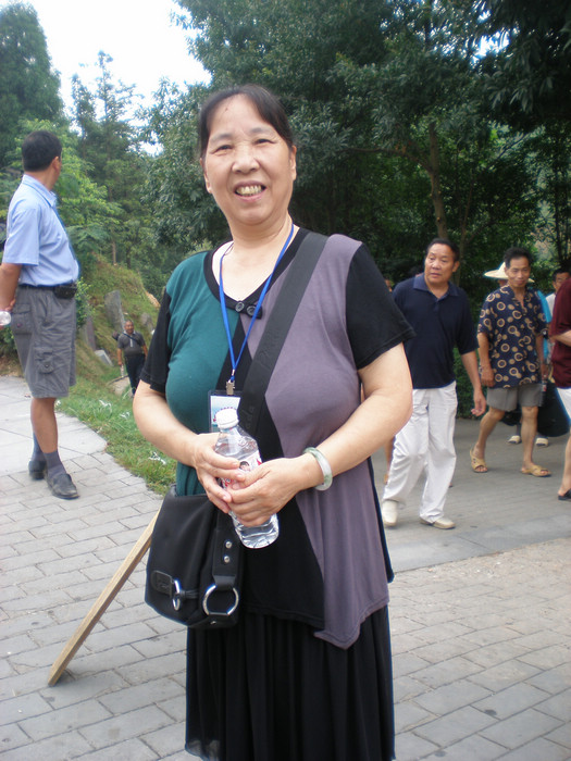 留守江永长沙女知青(俩拿水瓶者)王再云(穿红背心者)及(暂不知姓名者)2007年同赴江永旅游的长沙知青在女书村留影