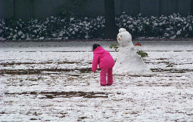 大男孩的兴趣不在堆雪人,这滚雪球对他的刺激也许更大。