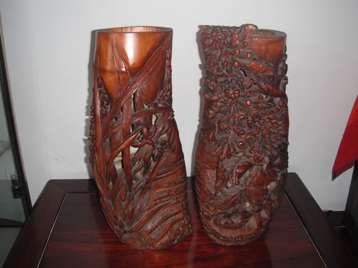 以下发几张我昨日拍的根雕及竹雕人物造像。