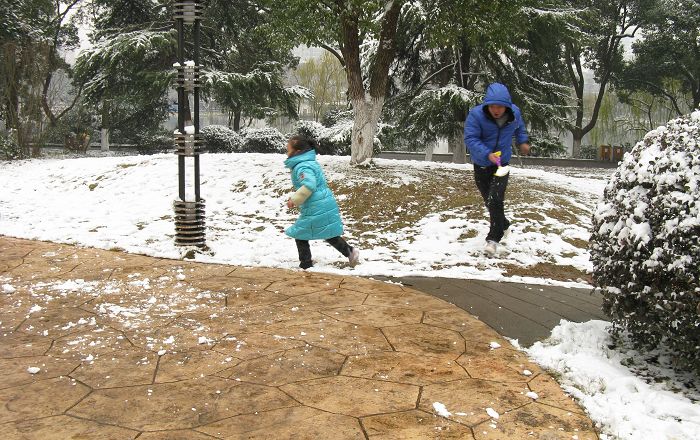 文化园拍完我来到神龙公园,时间已经将近十点钟,公园里已经有了许多游人。而最多的应该说是孩子,孩子们一点也不知道雪天的寒冷,欢快地奔跑和嘻戏,和爸爸妈妈打着雪仗,三五成群地堆着雪人,滚着大大的雪球……曾几何时,我们也唱过欢乐的童歌,但如今只会在午夜梦回时才能够重拾童时的欢笑了。带着孩子的大多是年轻的爸爸妈妈,他们为孩子拍照,和孩子们一起玩耍,正是人到中年无忧虑的时候,事业有成,正是生命最辉煌的阶段,想起我们生命最辉煌的时候,都是在国营单位中兢兢业业地埋头苦干,就不由得感概万分。