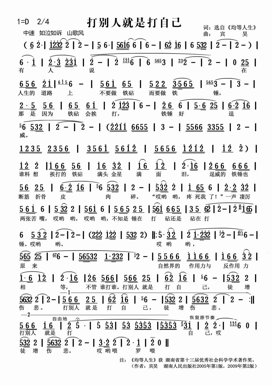 介绍衡阳知青写的一首好听的歌:《打别人就是打自己》