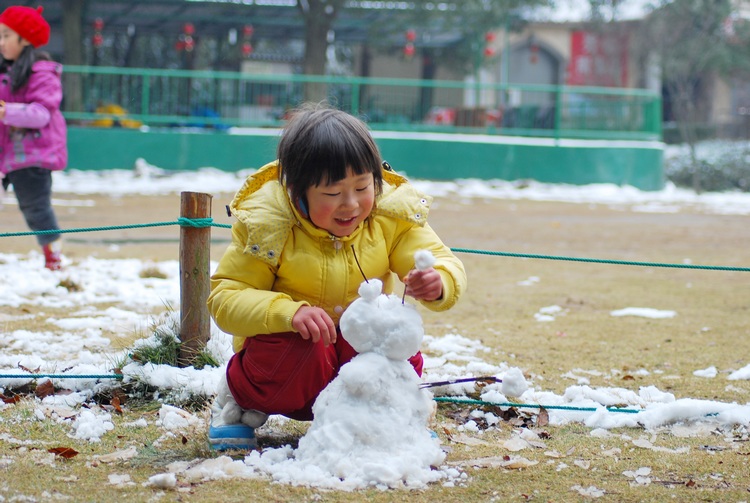 小孩子堆小雪人……