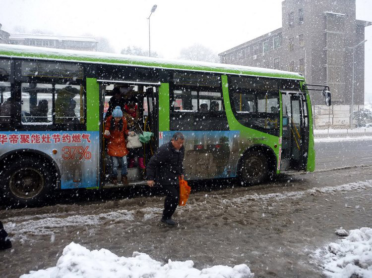 这群细妹子的出现,有利烘托气氛,但一路手舞足蹈的,将树上栏杆上的雪打落不少。