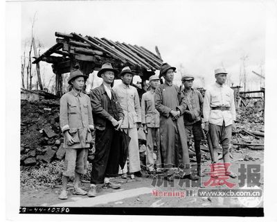 [3] 1944年9月15日,中国政府官员视察被夺回的腾冲。摄影/美国照相兵 Frank Manwarren