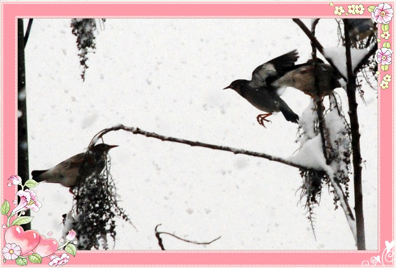 大家不用担心,  雪一融化,鸟儿们显出原形,吃得傫肥的在树上悠然自得。
