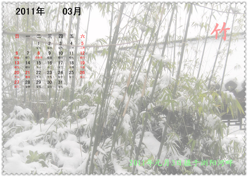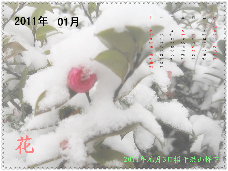 新的一年来了,长沙今年还下了雪,我拍了几张照片寄来,当然比不上你们那儿的雪景。不过我按朱纪飞的指导,做成两张日历,请欣赏。