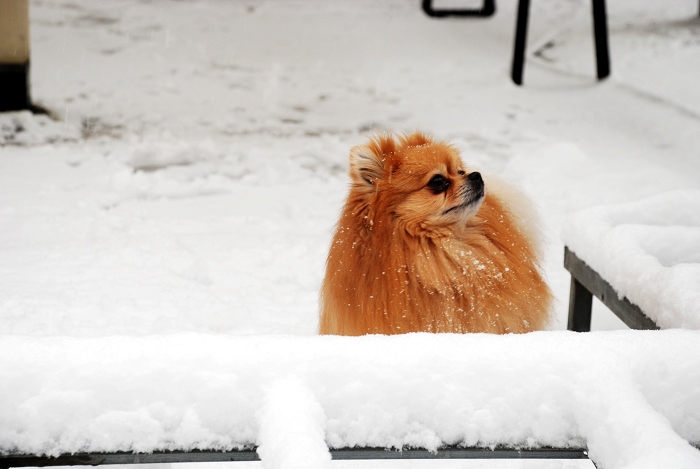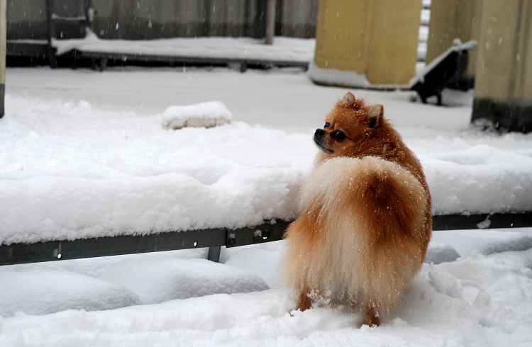 我家袖袖只是趴在窝里发呆,看着窗外的雪景,心向往之, 无奈没人肯带她出门。