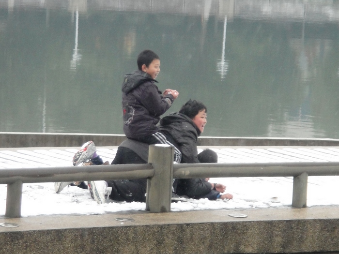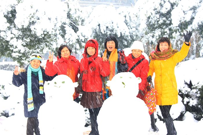 。一场雪让我们年轻好几岁,不,年轻了好几十岁,一场雪让我们拥有了童心,真想到雪地上打几个滚!