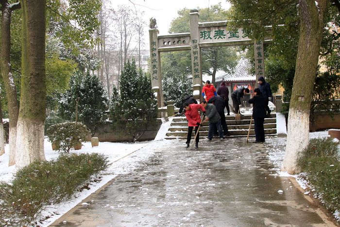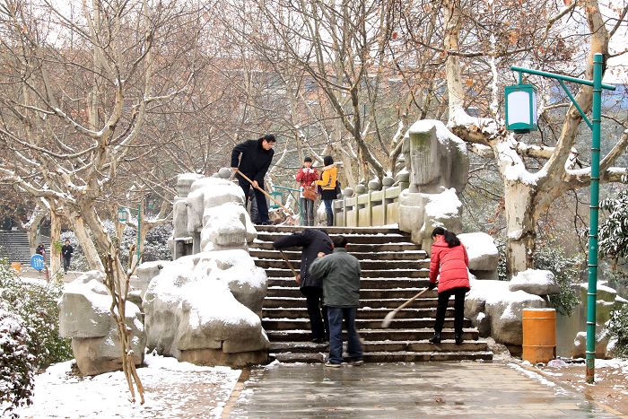 18,园林管理人员在铲雪