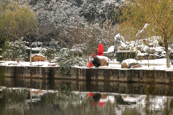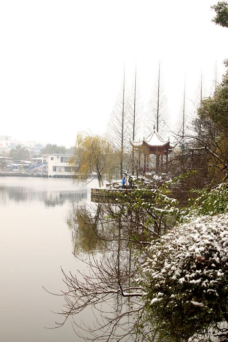 踏雪雨湖 昨日大雪未化,让我窃喜不已,一大早起来,稍事梳洗,背上相机就出门直奔雨湖,雪中雨湖,银装素裹,与春日的姹紫嫣红、夏日的青翠浓绿、秋日的金黄丰硕相比,别有一番风韵,第一次拍雪景,兴奋战胜了寒冷,片片不算好,请摄友、朋友们拍砖。1,雨湖雪景