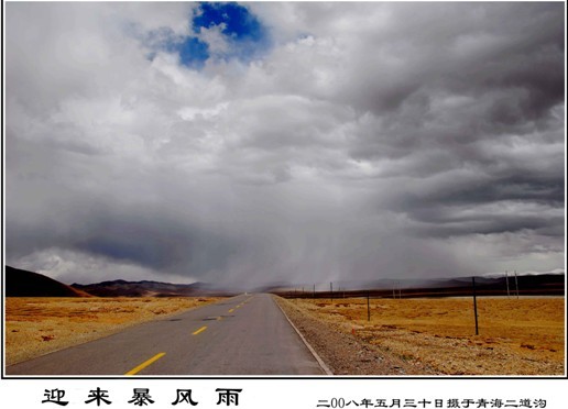 一路风雪,山上的风大,在高原上顶上没有雨了,下的可是冰粒,我可不敢在这柏油路上满是冰粒的路上开快车,只能是慢慢的开。