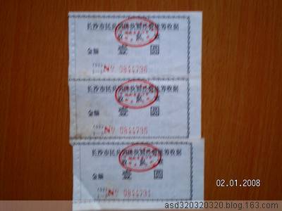 政府培训民兵用于备战和管制黑五类而向居民收取的培训费,背面说明是“此经费根据市政府(l992)39号文件决定向长沙市居民收取,每人每年1元。所收经费由市、区财政部门掌握,直接用于民兵训炼和执勤,以确保民兵工作顺利进行。”