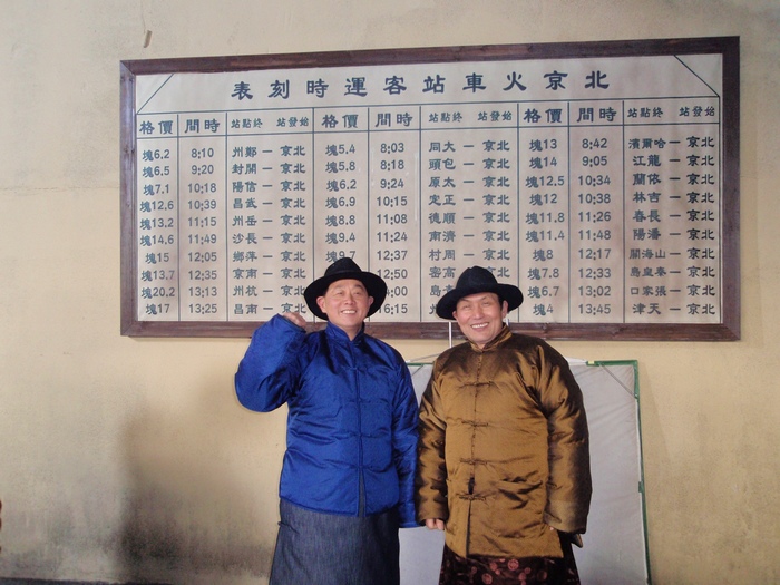 谢谢毛先生的点评,这张列车时刻表,我们也研究了半天,总觉得看起来别扭,但又说不出来。我没脱衣就把棉袍马褂穿上了,所以显得肚子挺起,背上一大坨,像个小丑,他们那几位身架子好些,扮的不错!