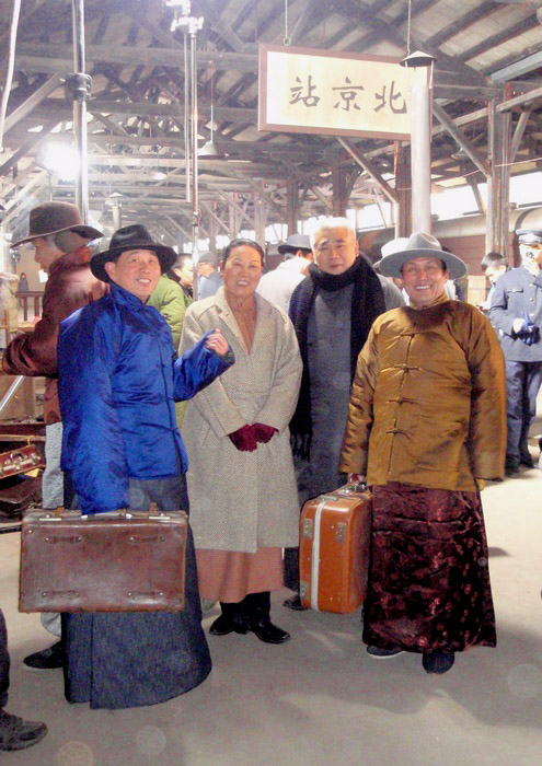 昨天虽出了太阳,但气温仍低,站台上穿堂风大,尽管我们穿的是新做的棉长袍马褂,但还是感觉冷。站台上又没地方坐,站着也累,我们这几个人就坐到车厢里。看了车厢里的温度计,车厢里也只四度,但没风,到底暖和点,后来不少群众演员学我们样上车来避寒和休息。火车也听导演的指挥,一下开出站台,一下又倒回站台来,我们坐在车上随它来回奔波。另一组的一位老人说,“搞了半天才晓得拍电影都咯样做假的”,大家都笑了起来,不知他以前是真的不知道?还是说故意说的笑话。