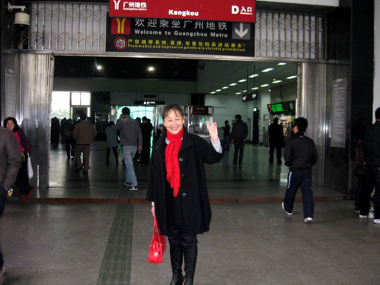 那天一大早,彬彬从深圳乘大巴过来。我在广东省汽车总站等了一个小时终于接到她。按照朋友划下的地铁路线,两个“刘姥姥”东张西望地顺着地下通道,来到地铁售票处。呵呵呵,排了半天队,只是换零钱,不售票。又去自动售票机前。更好笑了,显示频上的线路图像蜘蛛网,密密麻麻,这老花眼根本看不清。嘻嘻,只得请前面的小伙子帮忙操作,总算……我们两个“哈哈”了半天!