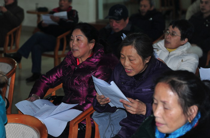 从后几张照片中,本人读出了无言的批评:该背唱了,女低的同胞们!  应该向女高学习,下次争取不看歌谱了.