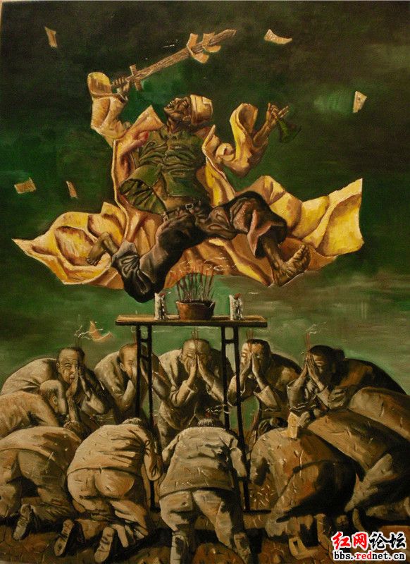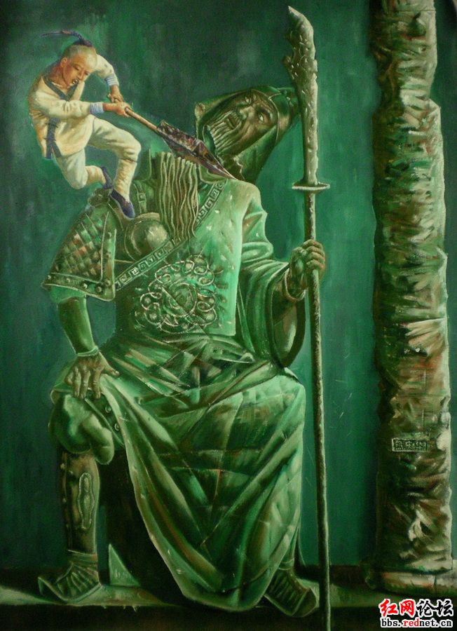 不排除熊庆华画笔下的人物借鉴了博泰罗人物造型,而他不把他笔下的农民画成罗中立的“父亲”样,可能这种形象更符合他所看到的农民心中的“鬼”。