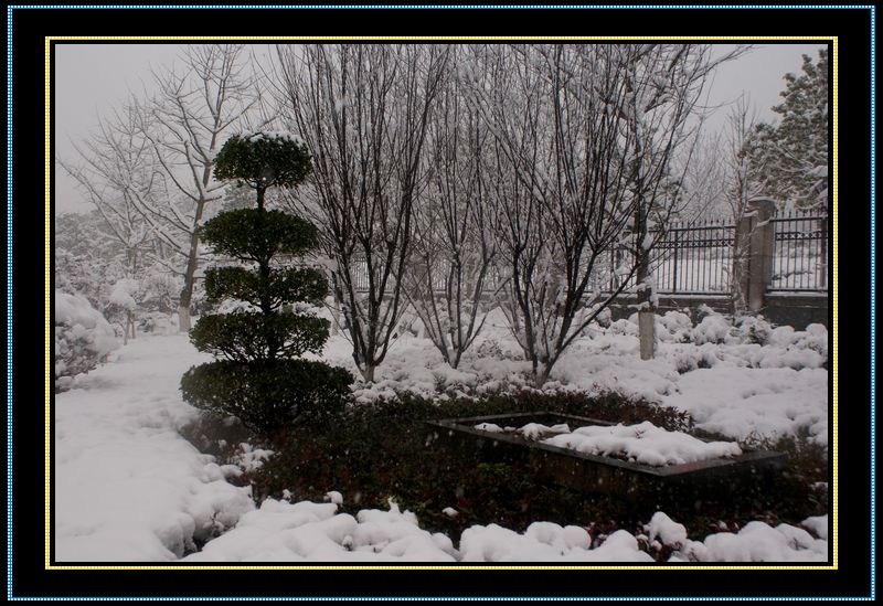 有个朋友告诉我告诉我这音乐厅在省政府的北大门进去便是,谁知我去刚到此下车就被交警告知去北大门的路因正开两会而被封闭,而我要去的湖南群众文化艺术馆还离这里有三站路程,我心里盘算时间还早咱就一路欣赏着这长沙几年难遇的雪景,一边寻觅着我喜欢的景色,踏着厚厚的积雪,听着脚下嗄吱嗄吱踏雪声,呼呼的喘着粗气向前走去。
