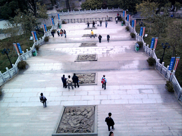 第一层香炉台上横卧着长长的香炉供人祭拜