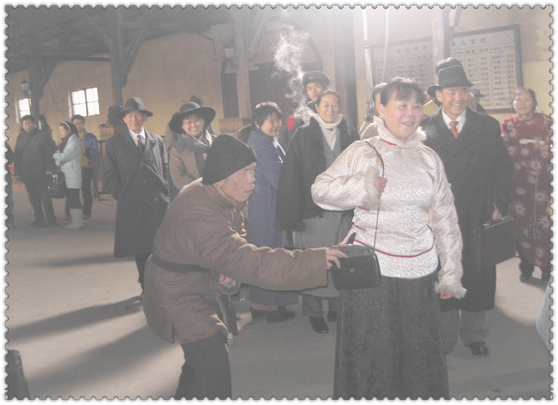 3.我想试试镜头,从口袋里掏出相机,“不许拍照!”从身后传来斥责声。我掉头一看,只见一摄制组一人向我走来、“老爷子,拍不得。”我一声不吭,当着他的面收起了相机,就在这时、火车开动了,我又掉头去看周冬雨跑,她正朝我们这边跑着。从脚步声中我感觉到摄制组的人也退回去了。就在周冬雨跑到我前面柱子时,也是火车要停的瞬间,突然闪光灯一闪,“有人拍照!哪个拍照!”我知道行者抓拍成功了。当那个摄制组的人跑到我身边时,我手还在衣袋里;再说也没听到导演象上次那样喊“谁在后面跑?穿帮了!”这说明行者没有惹祸,于是那人只望了我几眼就走开了。他一走开,我连忙往去西奇和渠江那缝跑,我知道行者听到喊声,肯定会躲藏到他俩那里。我赶到时果然行者与他俩都有在,三人围在一起笑成一堆。我问拍得怎么样,三人异口同声地说,蛮好蛮好。大家看,行者的手艺如何?