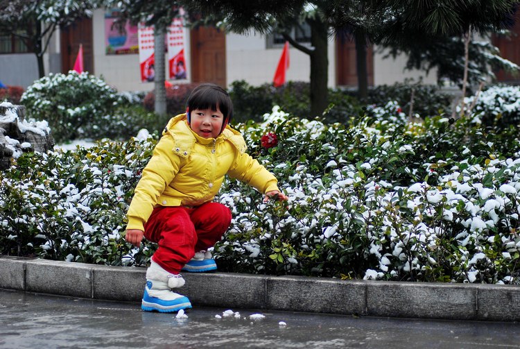 小孩子堆小雪人……